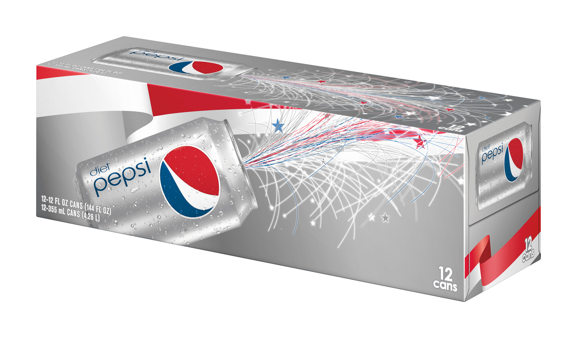 I worked closely with the Pepsi art director to ensure everything was up to her standards. We worked closely to develop the concept, which must billboard, sometimes throwing out whole designs. This was the theme ultimately chosen. One of the more demanding art directors, much attention to detail was required to achieve the proper crossmatching. I also had to make sure none of the firework detail would be lost due to dot gain, painstakingly making sure everything was up to at least minimum spec. I handled all layout and production for the Fourth of July packaging in conjunction with the art director. This was a demanding but fun project. We commenced its work at the height of Winter, so it really made us yearn for its warm weather release.